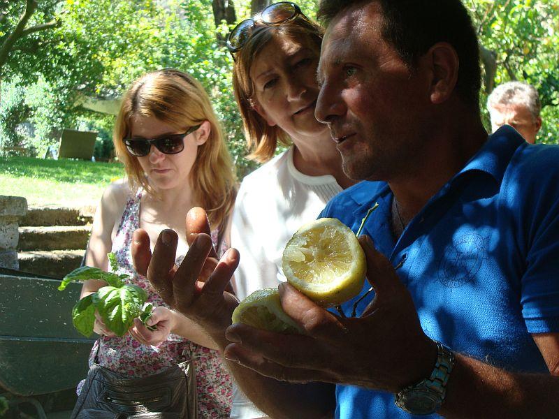 Vrt jim omogoča, da večina hrane v resnici prepotuje nič kilometrov. Posebej so ponosni na stoletne oljke, ki jim letno dajo 1.800 l oljčnega olja. Porabijo ga v hotelu. Pomaranče, limete in limone uporabijo za pripravo pijač in marmelad, zelenjava pa seveda konča v obliki zajtrkov in kosil. Pridelke, ki jih ne pridelajo sami, kupujejo čimbolj lokalno. Ob tem so nenehno poudarjali, da se tako hotel tesneje povezuje z lokalno skupnostjo. Na terasi hotela, tik ob bazenu, so nam pripravili odlično kosilo z razgledom na vrt, kjer je zrasla večina hrane na naših krožnikih. Da dobro in zdravo raste, poskrbi kompost, pridelan iz tistega, kar ostane pri pripravi v kuhinji. Popoln krog z nič kilometri – če govorimo o prehodu v krožno gospodarstvo na lokalni ravni.