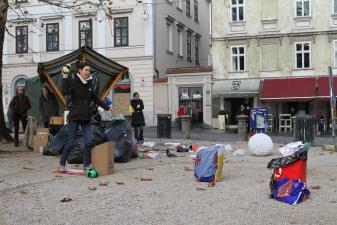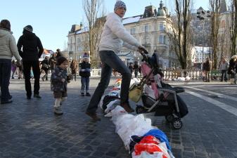 Na Kongresnem trgu smo vsak dan z mimoidočimi zaigrali igro košarke z improviziranimi žogami in koši iz plastičnih vrečk.
