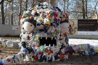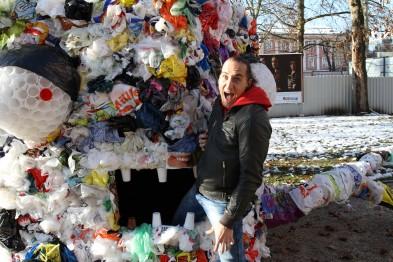 The Miha Artnak je ustvaril umetnino iz plastičnih vrečk, ki jo je poimenoval Lovka na lovce - prebujena pošast iz Kongresnega trga.