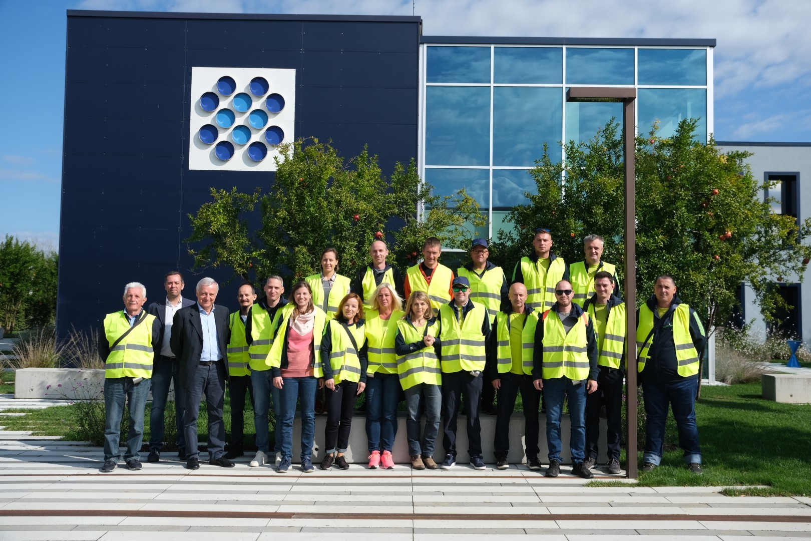 Po predstavitvi podjetja smo si ogledali obrat za predelavo bioloških odpadkov in zelenega odreza. Sledila je simulacija zbiranja odpadkov od vrat do vrat ter ogled voznega parka 600 vozil. Poleg tehničnih karakteristik smetarskih strojev smo si ogledali še sortirnico ter predelovalnico odpadnih plenic in drugih higienskih izdelkov, ki iz preteklih izkušenj najbolj uspešnih občin v veliki meri predstavljajo velik delež mešanih komunalnih odpadkov. Zato je reciklažni obrat še posebej pomemben za identifikacijo novih materialov in novih postopkov recikliranja, ki trenutno še niso obdelani ali so podcenjeni. Obrat je prejel dovoljenje za največjo zmogljivost predelave 10.000 ton plenic na leto.